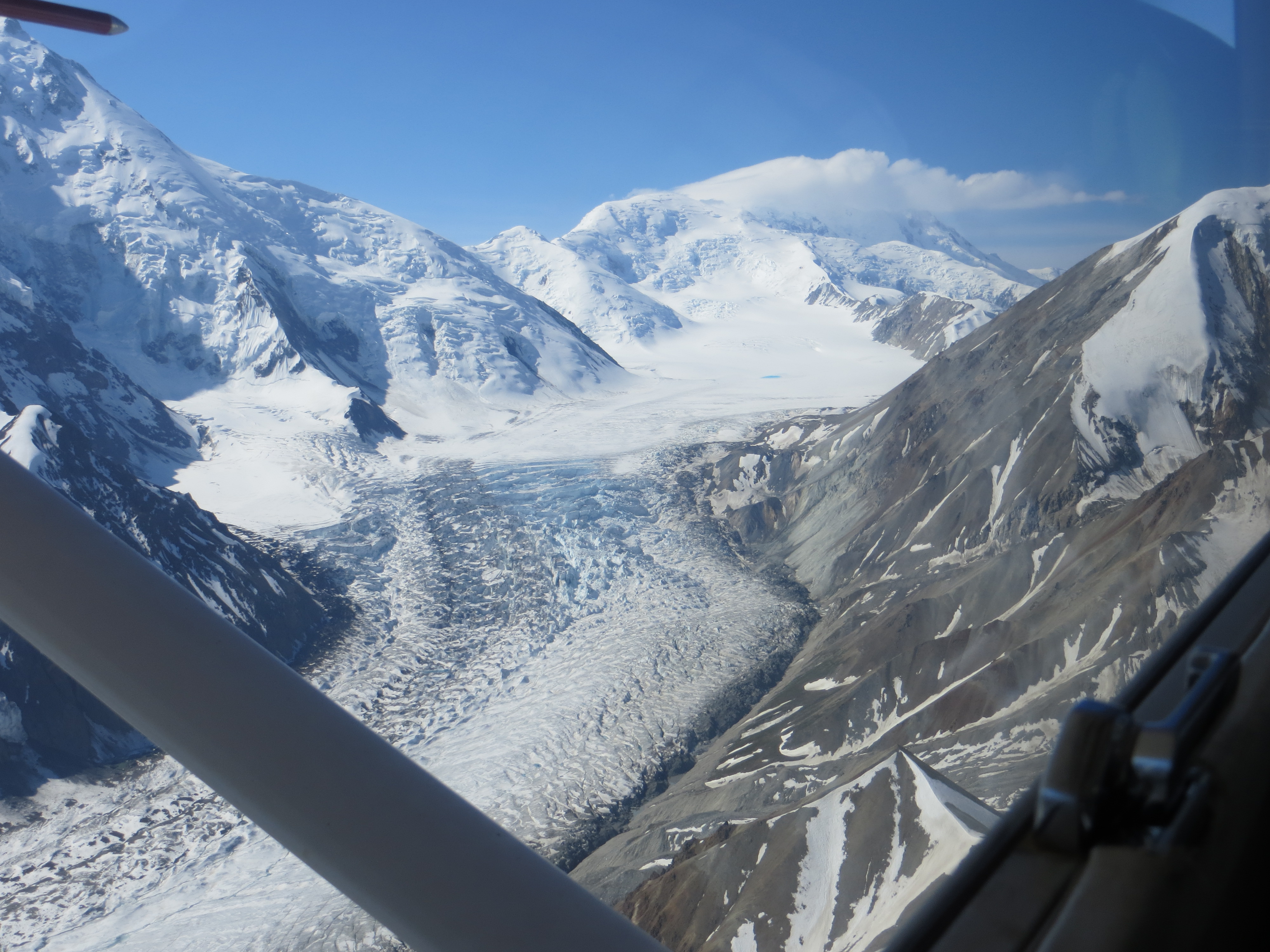 The mountain, McKinley or Denali (the high one) is the tallest in North America (20,320 ft.) and the largest base to peak rise of any mountain in the world.