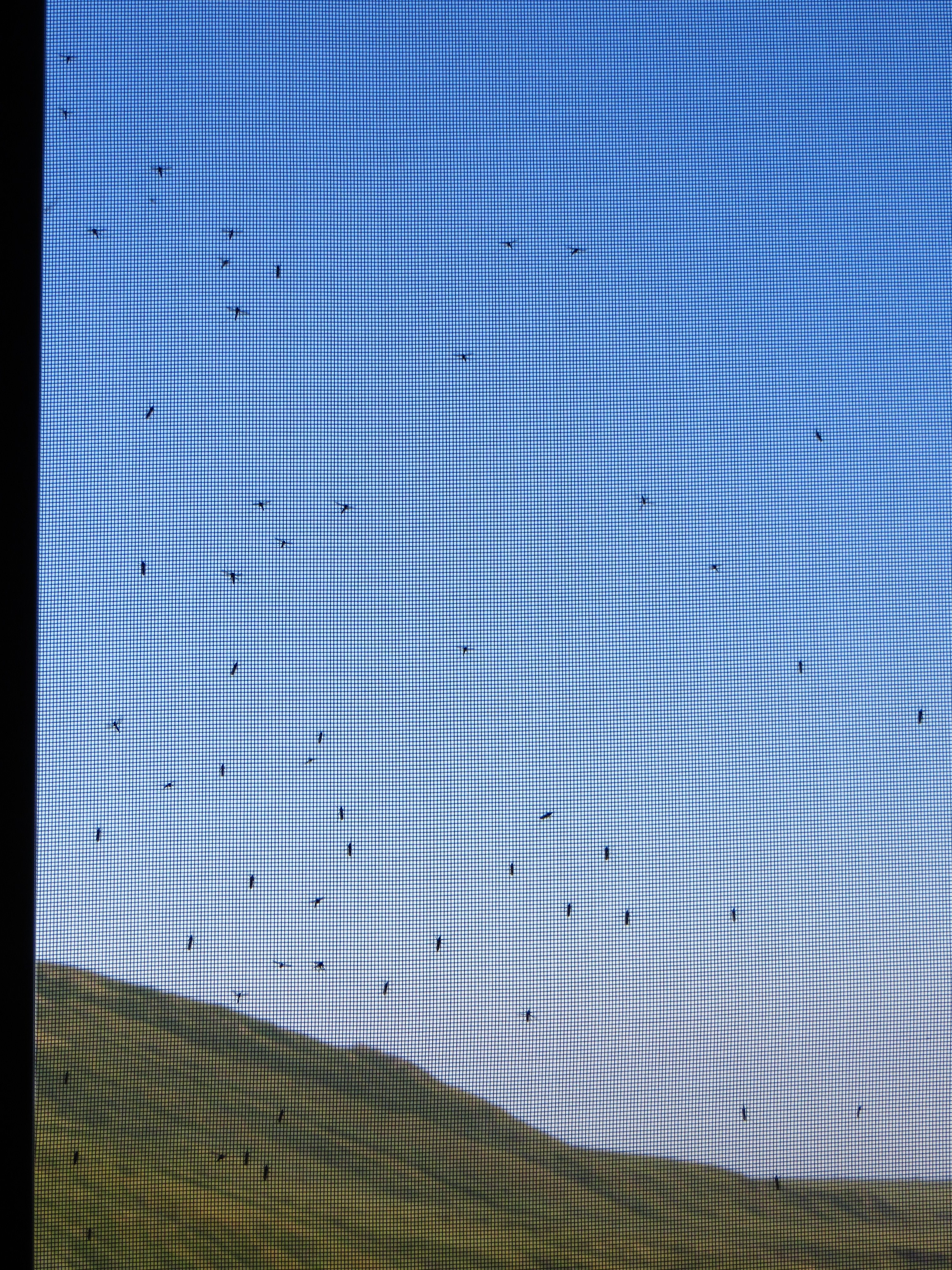 Matt, who I believe owns, definitely manages, Kantishna Air Taxi and Skyline Lodge, is a music lover. He organizes a yearly music festival in Kantishna, 92 miles by road from park headquarters in Denali.So what is this picture? I almost forgot to mention a very common form of Alaskan wildlife, some say the state bird: the mosquito. This is a view of them perched on our window screen in Kantishna, where they were especially numerous. I heard people use DEET as a verb.The Kantishna Air Taxi plane on which we flew back out to the Denali entrance. Our pilot, Dick, knew a lot about the mountain, having climbed it twice, by different routes (a fourteen to twenty one day undertaking) as well as having climbed Everest.The Russian Orthodox cathedral in Sitka. Settled by the Tlingit people thousands of years ago, Sitka was called New Archangel by the Russians who settled there in 1799. It is located on Baranof Island. Sitka, like many cities in southeast Alaska, an only be reached by boat or air.Bald eagles, along with ravens, were the most common birds we saw in southeast Alaska. This one was at the Alaska Raptor Center in Sitka, where injured birds, even from distant states, are cared for and released if possible.