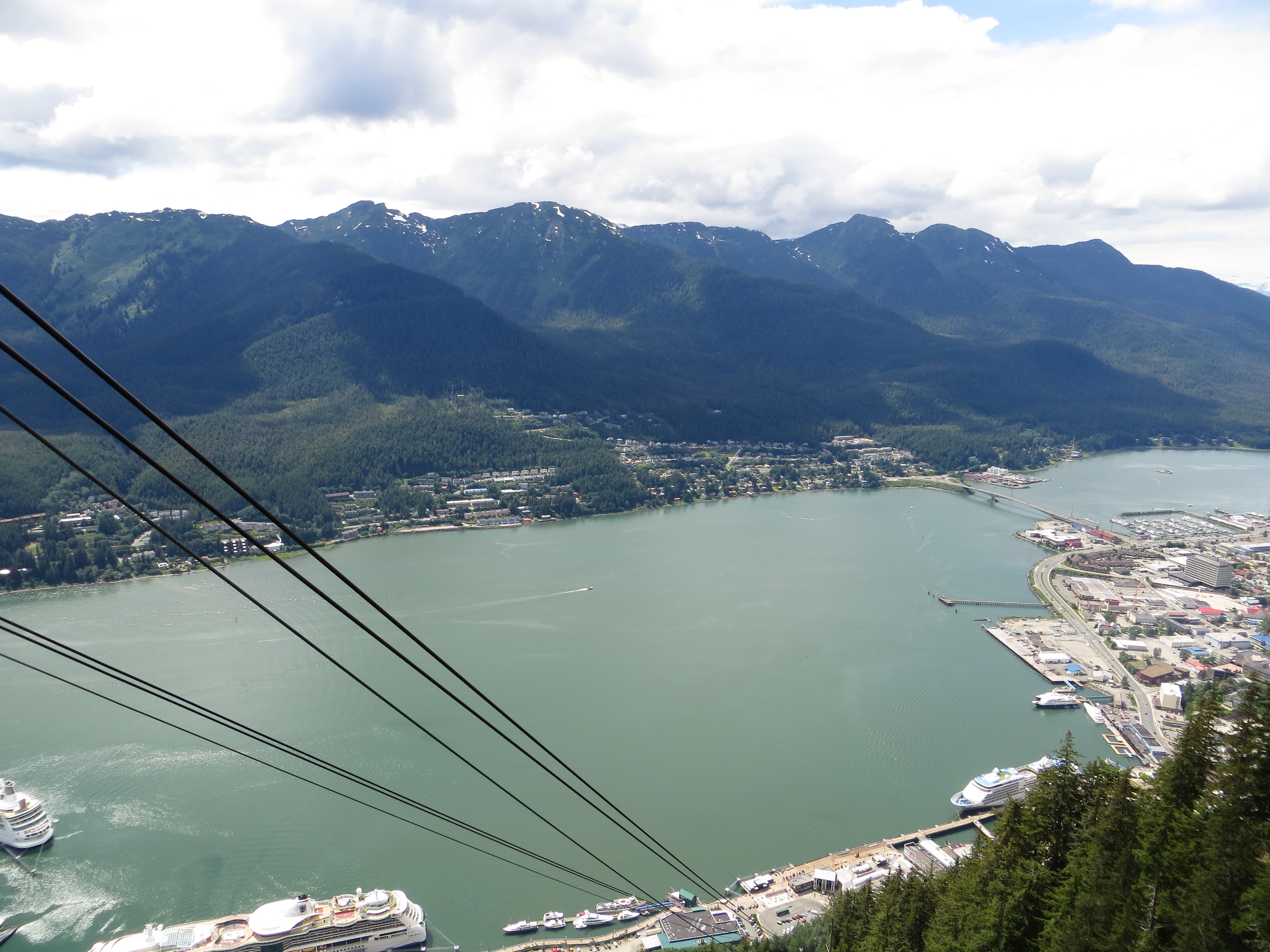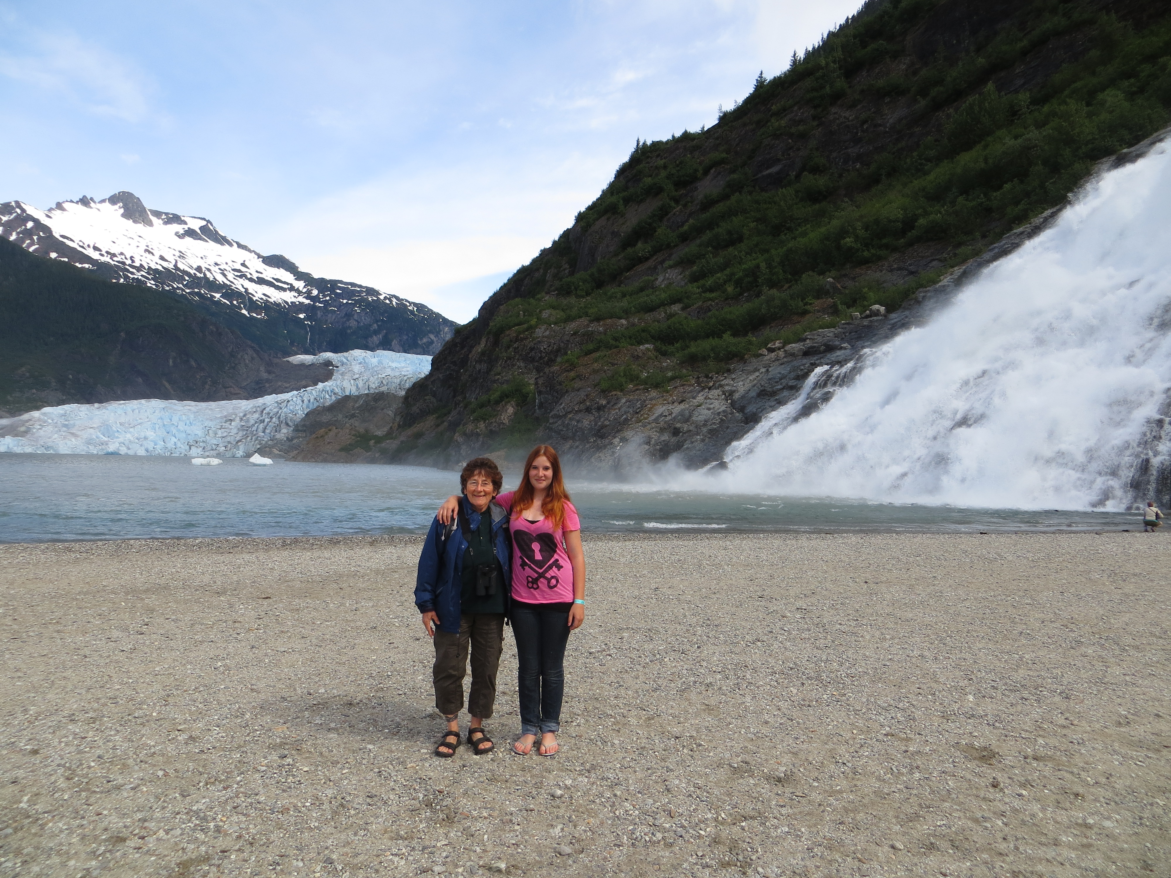 Luna in our cozy cabin on board with its own “showlet” (toilet cum shower).Humpbacks doing cooperative bubble net feeding. They encircle prey fish and blow out bubbles forcing them to the surface.The Mendenhall Glacier near Juneau. It has its own visitors’ center, but is retreating at such a rate that in the next twenty years it will no longer be visible from there.This is me and Luna in front of Mendenhall Glacier and Nugget Falls. Yes, she’s taller than I am.The glacier and falls seen from the visitors’ center.Juneau from Mt. Roberts via the tram. We were given vouchers to ride the tram and eat lunch at a restaurant in Juneau.The Mt. Roberts tram, owned and operated by one of the Alaskan native corporations.Dance performance at the tram station and again in auditorium on Mt. Roberts by All Nations Children.The Alaskan Dream at Orca Point Lodge.The “super moon”. Sunset and full moon rise between 10:30 and 11:00. Too late for me most nights.In Glacier Bay National Park. I’ll say it again: the mountains and water in Alaska are incredible.A grizzly or brown bear seen from the boat.