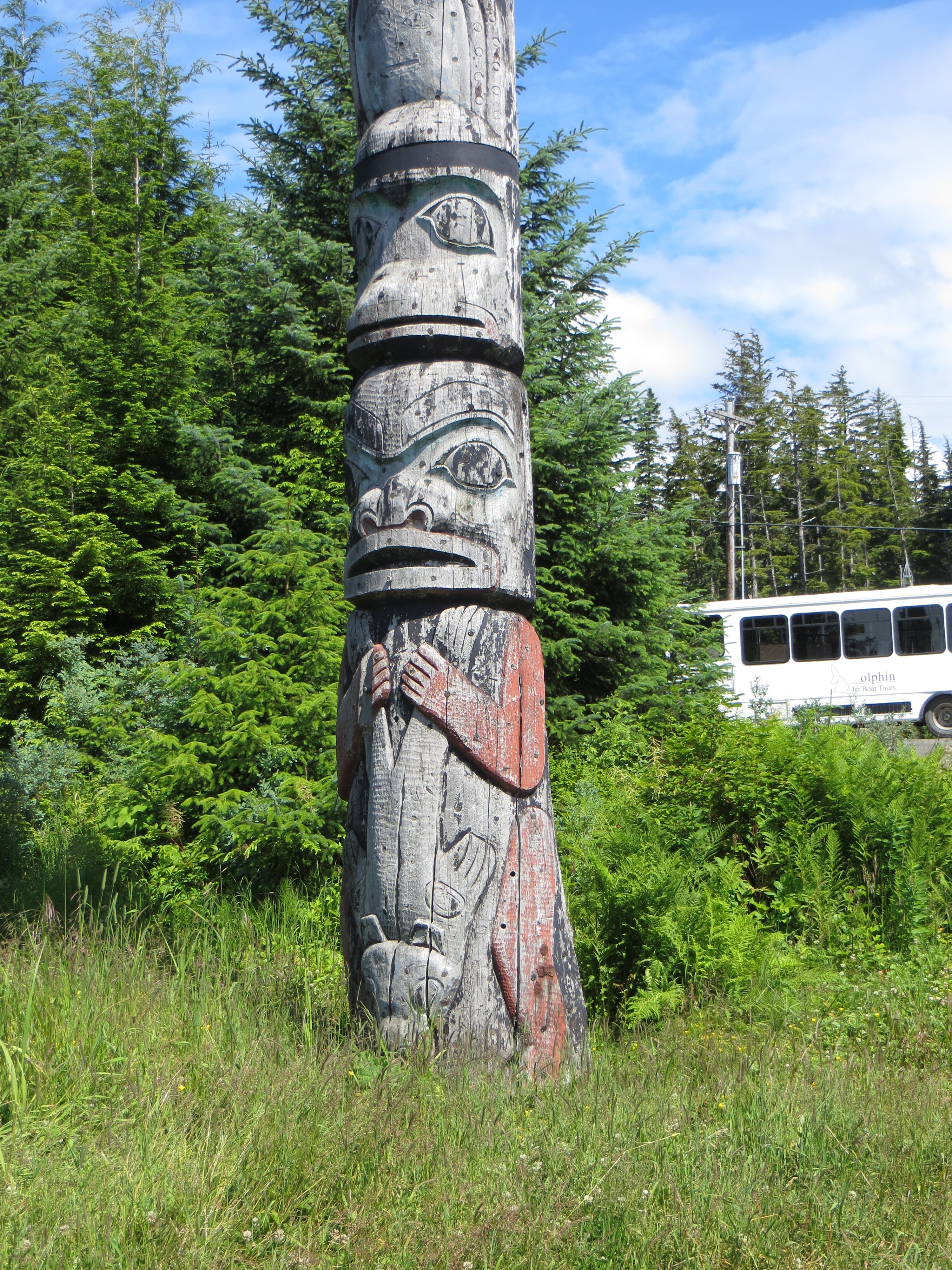 Base of the world’s tallest totem pole carved from one tree.
