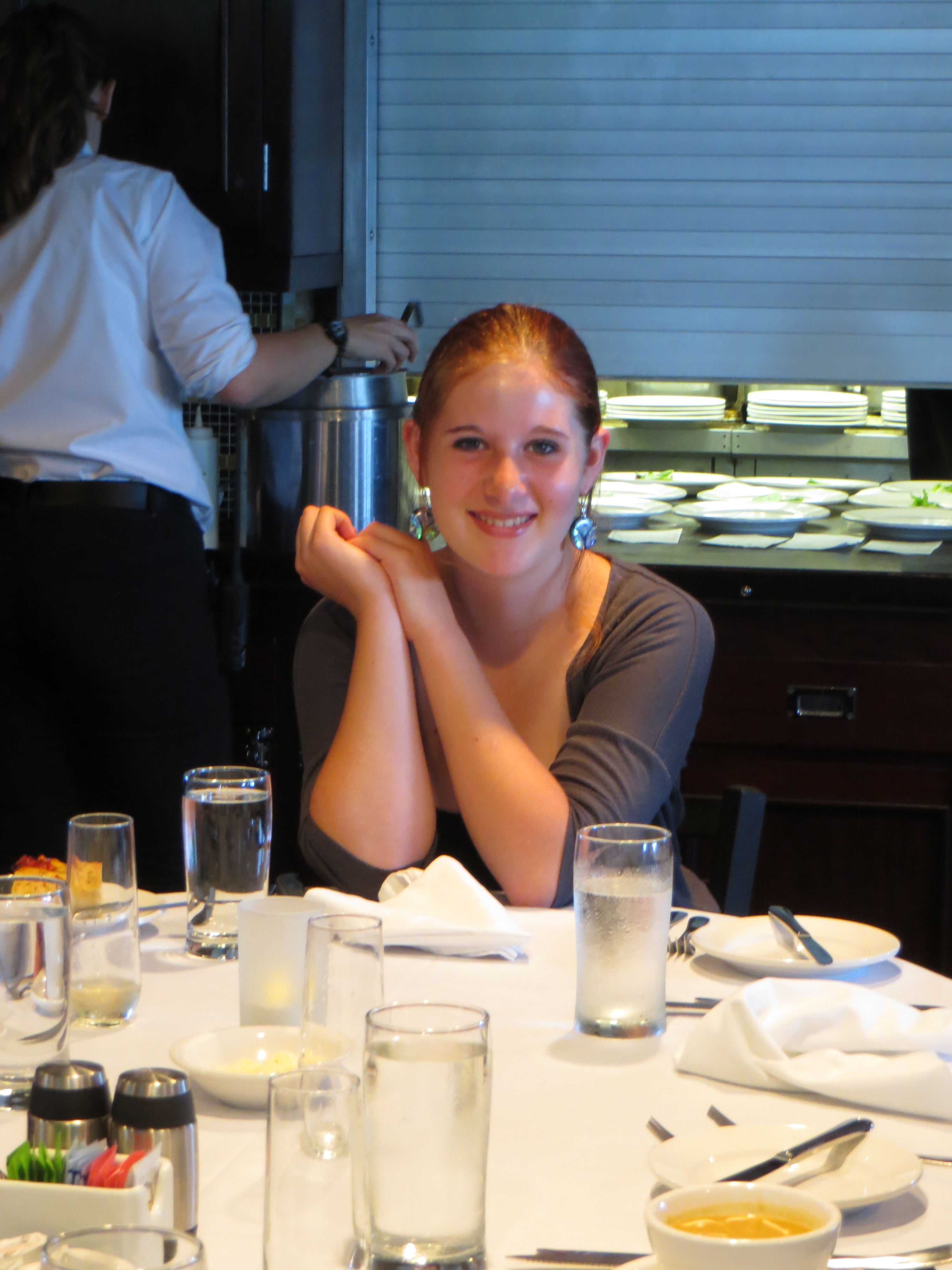 Luna at farewell dinner. By the way, the food was incredible. A professional chef and a pastry chef fed us as if we were dining in a fancy restaurant.